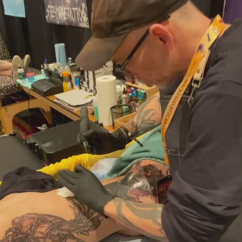 Under the moniker TuffyTats, Trevor operates as a master of "Graffiti" design—a unique fusion of street-level grit and technical precision. His work often features iconic motifs like the Hannya mask, mechanical skulls, and the geometric "Eye of Providence," all executed with the sharp line work of a seasoned tattooer and the explosive color palettes of a graffiti king.