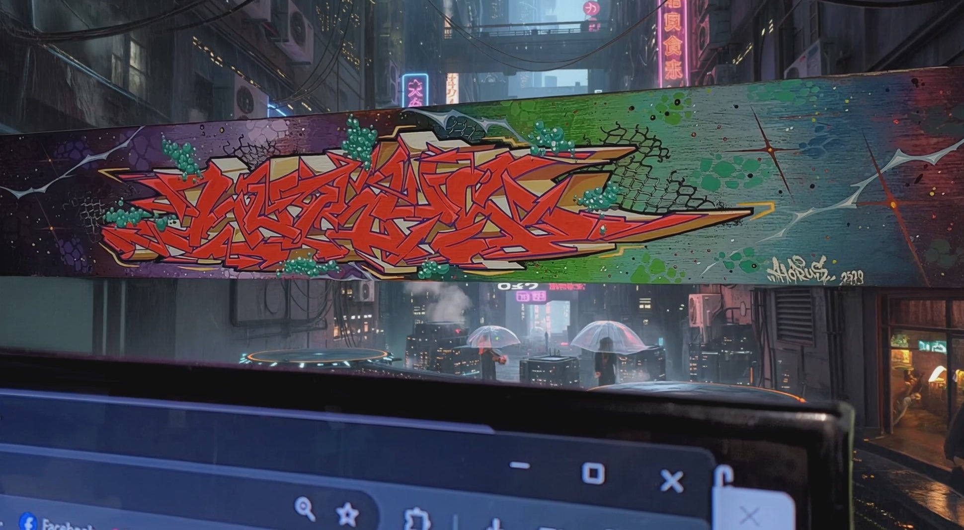 The result is a high-impact piece that showcases the distinct style, abstract lettering, and cosmic color palette characteristic of Horus's urban work. This is a one-of-a-kind collector’s item that brings genuine, high-quality, themed urban artistry indoors.